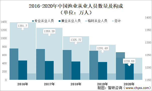 圖表 中國漁業從業人員數量統計