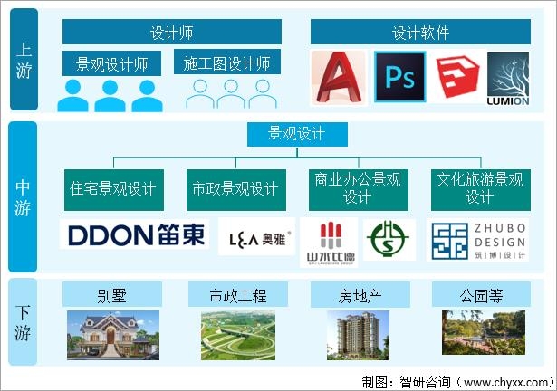 景觀設(shè)計(jì)主要服務(wù)于:城市景觀設(shè)計(jì)(城市廣場、商業(yè)街、辦公環(huán)境等)、居住區(qū)景觀設(shè)計(jì)、城市公園規(guī)劃與設(shè)計(jì)、濱水綠地規(guī)劃設(shè)計(jì)、旅游度假區(qū)與風(fēng)景區(qū)規(guī)劃設(shè)計(jì)等 。園林景觀設(shè)計(jì)是指風(fēng)景與園林的規(guī)劃設(shè)計(jì),按照目前國內(nèi)行業(yè)現(xiàn)狀,主要分為住宅景觀、市政景觀、商業(yè)辦公景觀、文化旅游景觀設(shè)計(jì)等。景觀設(shè)計(jì)是一個綜合性學(xué)科,除涉及植物、設(shè)計(jì)、規(guī)劃等學(xué)科外,還涉及土建、文化、歷史、藝術(shù)、美學(xué)等方面的知識。從整個產(chǎn)業(yè)鏈來看,園林景觀設(shè)計(jì)行業(yè)的下游客戶主要包括房地產(chǎn)開發(fā)商和各級政府及行政單位等。景觀設(shè)計(jì)行業(yè)產(chǎn)業(yè)鏈