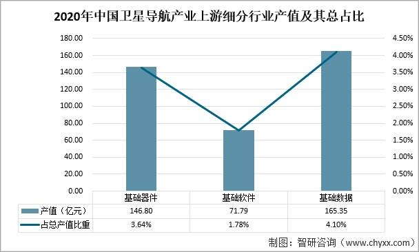 2020年中國衛星導航產業上游細分行業產值及其總占比