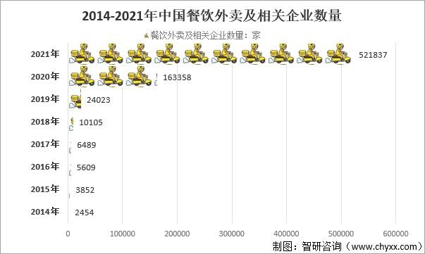 在疫情環(huán)境下,餐飲和外賣產(chǎn)業(yè)成為我國消費(fèi)增長的重要驅(qū)動因素,大量第三方企業(yè)或網(wǎng)站也開始搭建訂餐平臺,加入外送服務(wù)行業(yè),餐飲外送儼然成為當(dāng)下最炙手可熱的餐飲模式。截止2021年底,中國餐飲外賣及相關(guān)企業(yè)數(shù)量521837家,較2020年增長358479家。
