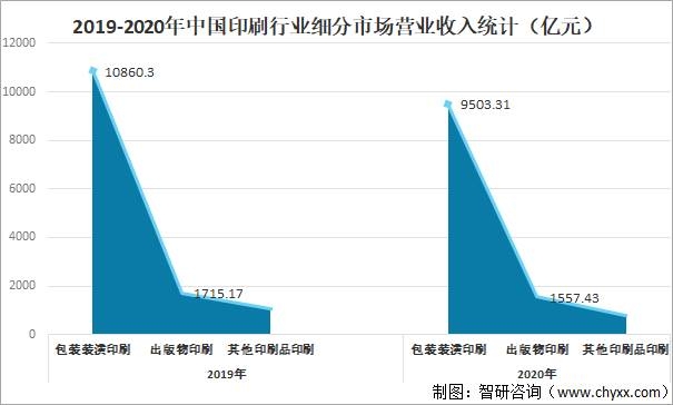 從細分市場來看,2020年中國包裝裝潢印刷業營業收入為9503.31億元,較2019年減少了1356.99億元;出版物印刷業營業收入為1557.43億元,較2019年減少了157.74億元。