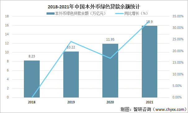 綠色信貸就是“green-creditpolicy”,是環保總局、人民銀行、銀監會三部門為了遏制高耗能高污染產業的盲目擴張,于2007年7月30日聯合提出的一項全新的信貸政策。我國綠色貸款在綠色金融體系中占據舉足輕重的地位,是實體經濟綠色低碳發展的重要資金來源。大力發展綠色信貸,著力完善綠色貸款標準、統計、業績評價等基礎性工作,始終是我國綠色金融體系建設的重要任務,2021年中國本外幣綠色貸款余額達15.9萬億元,較2020年增加了4.0萬億元,同比增長33.05%。