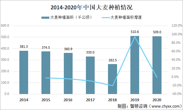 2014-2020年中國大麥種植情況