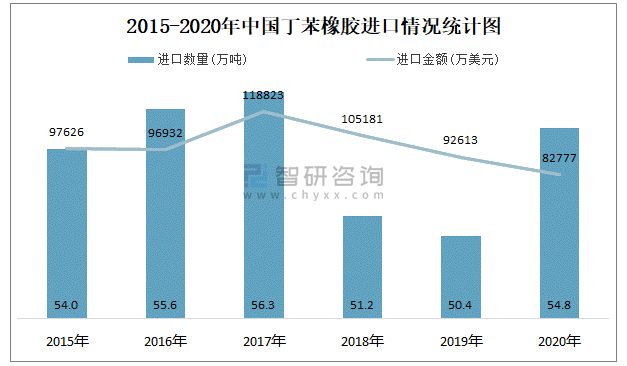 近一年中國丁苯橡膠進出口數量、金額統計表
