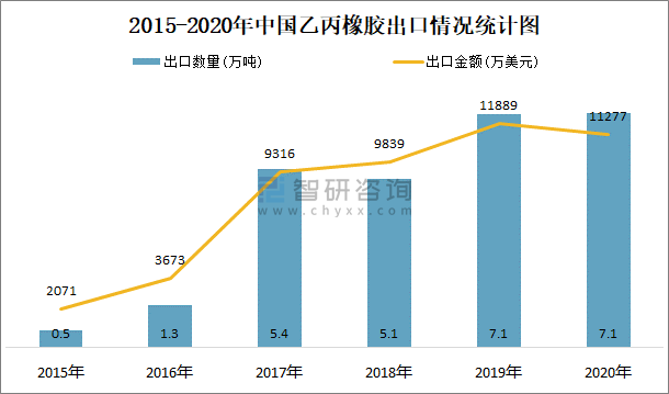 2015-2020年中國乙丙橡膠出口情況統(tǒng)計圖