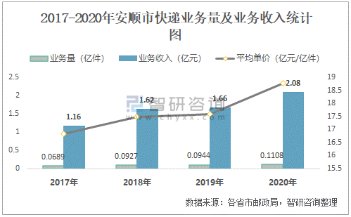 2017-2020年安順市快遞業(yè)務(wù)量及業(yè)務(wù)收入統(tǒng)計(jì)圖