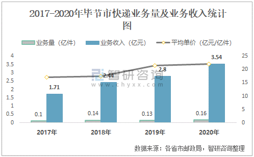 2017-2020年畢節(jié)市快遞業(yè)務(wù)量及業(yè)務(wù)收入統(tǒng)計(jì)圖