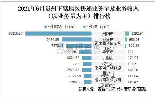 2021年6月貴州下轄地區(qū)快遞業(yè)務(wù)量及業(yè)務(wù)收入(以業(yè)務(wù)量為主)排行榜