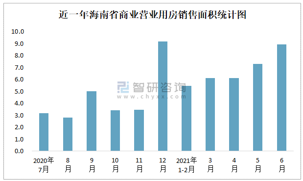 近一年海南省商業營業用房銷售面積統計圖