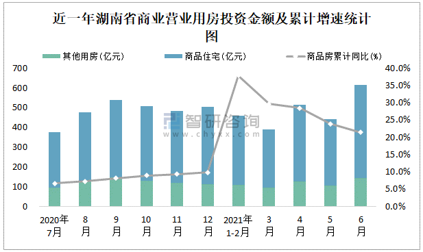 根據(jù)國家統(tǒng)計局數(shù)據(jù)統(tǒng)計可知:2021年6月湖南省房地產(chǎn)開發(fā)投資商品房投資金額為614.49億元,其中包括辦公樓、商業(yè)營業(yè)用房等其他用房144.67億元(注:辦公樓、商業(yè)營業(yè)用房未分開統(tǒng)計);2021年1-6月湖南省房地產(chǎn)開發(fā)投資包括商業(yè)營業(yè)用房在內(nèi)的其他用房累計金額為582.34億元。