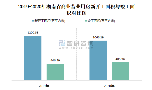 2019-2020年湖南省商業(yè)營業(yè)用房新開工面積與竣工面積對比圖