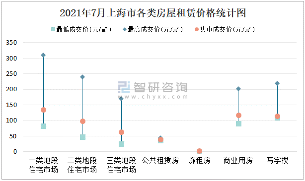 2021年7月上海市各類房屋租賃價格統(tǒng)計圖