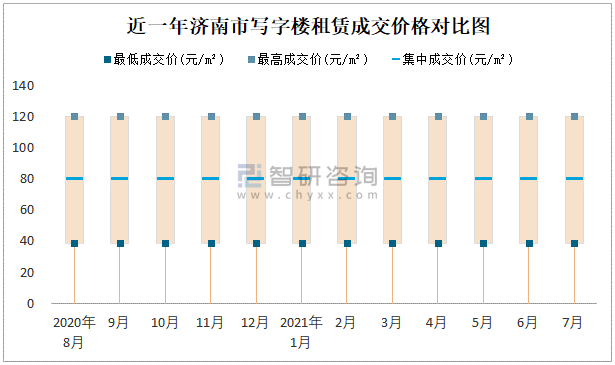 近一年濟南市寫字樓租賃成交價格對比圖