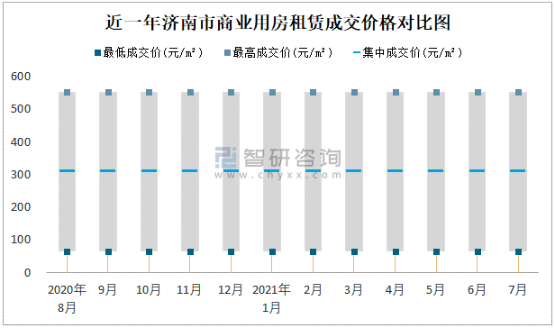 近一年濟南市商業用房租賃成交價格對比圖