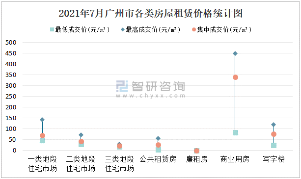 2021年7月廣州市各類房屋租賃價(jià)格統(tǒng)計(jì)圖