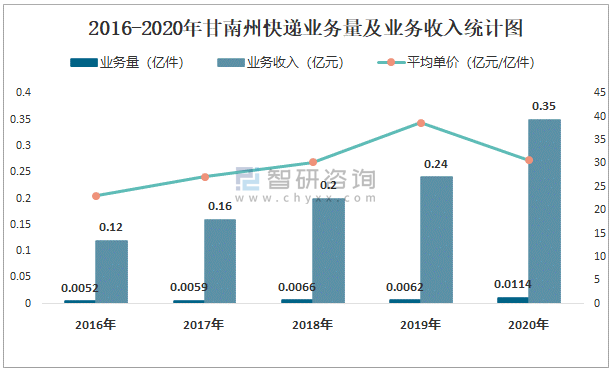 2016-2020年甘南州快遞業(yè)務(wù)量及業(yè)務(wù)收入統(tǒng)計(jì)圖