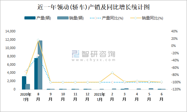 近一年領動(轎車)產銷及同比增長統計圖