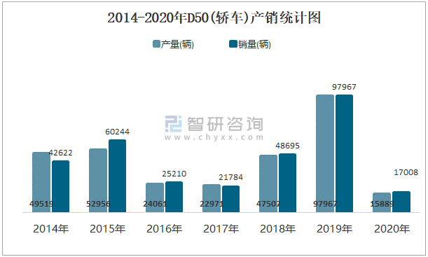 2014-2020年D50(轎車)產銷統計圖