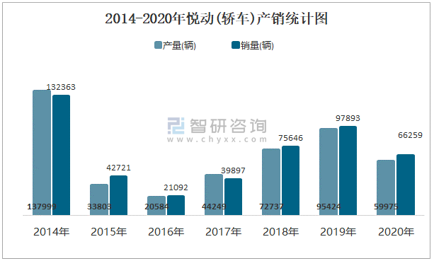2014-2020年悅動(轎車)產銷統計圖