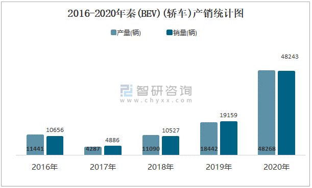 2016-2020年秦(BEV)(轎車)產銷統計圖