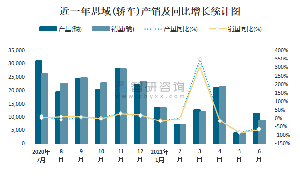 根據(jù)中國(guó)汽車工業(yè)協(xié)會(huì)數(shù)據(jù)可知:2021年6月思域(轎車)產(chǎn)量為11505輛,同比下降60.1%,銷量為8816輛,同比下降67%,當(dāng)月產(chǎn)銷率為76.63%;2021年上半年思域(轎車)產(chǎn)量為70279輛,同比下降28.3%,銷量為67172輛,同比下降30.8%,產(chǎn)銷率為95.58%;2014-2020年思域(轎車)產(chǎn)銷量總體呈現(xiàn)上升趨勢(shì),且近7年總銷量大于總產(chǎn)量,清倉(cāng)庫(kù)存2126輛。