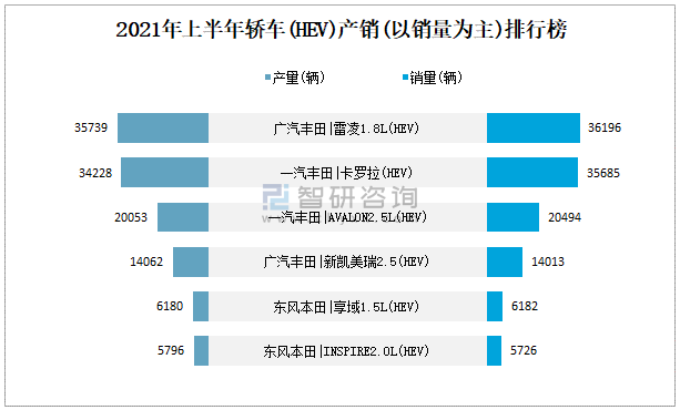 2021年上半年轎車(HEV)產銷(以銷量為主)排行榜