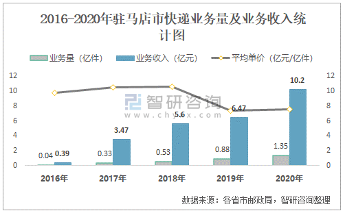 2016-2020年駐馬店市快遞業(yè)務(wù)量及業(yè)務(wù)收入統(tǒng)計(jì)圖