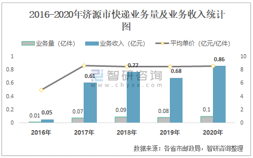 2016-2020年濟(jì)源市快遞業(yè)務(wù)量及業(yè)務(wù)收入統(tǒng)計(jì)圖