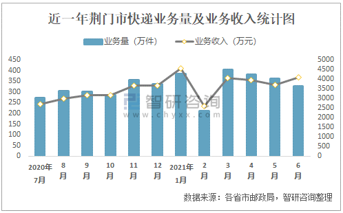 根據各省市郵政局數據可知:2021年6月荊門市快遞業務量為326.92萬件,業務收入為4076.57萬元;2021年1-6月荊門市快遞累計業務量為2069.88萬件,同比增長81.04%,累計業務收入為22948.3萬元,同比增長71.7%;2016-2020年荊門市快遞業務量逐年遞增,業務收入在2019年達到最大值,此后有所下滑,平均單價總體呈現下降趨勢。
