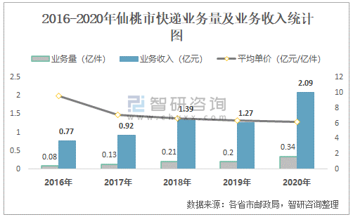 根據(jù)各省市郵政局?jǐn)?shù)據(jù)可知:2021年6月仙桃市快遞業(yè)務(wù)量為424.21萬(wàn)件,業(yè)務(wù)收入為2270.88萬(wàn)元;2021年1-6月仙桃市快遞累計(jì)業(yè)務(wù)量為2154.64萬(wàn)件,同比增長(zhǎng)96.4%,累計(jì)業(yè)務(wù)收入為12791.29萬(wàn)元,同比增長(zhǎng)67.06%;2016-2020年仙桃市快遞業(yè)務(wù)量與業(yè)務(wù)收入均總體呈現(xiàn)上升趨勢(shì),平均單價(jià)逐年遞減。