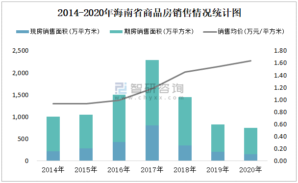 2014-2020年海南省商品房銷售情況統計圖