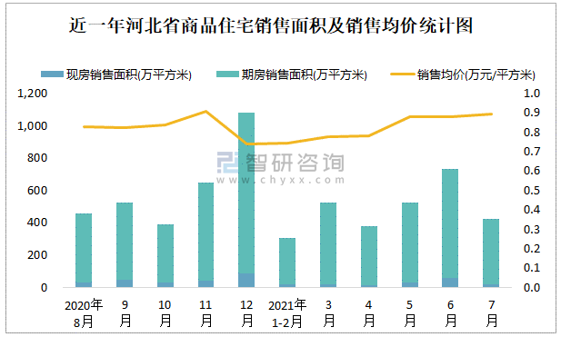 2021年7月河北省銷售商品住宅425.96萬(wàn)平方米 銷售均價(jià)約為0.89萬(wàn)元/平方米