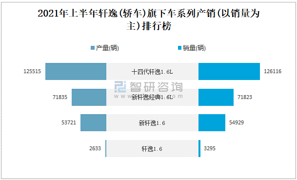 2021年上半年軒逸(轎車)旗下車系列產銷(以銷量為主)排行榜