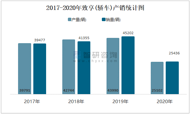 2017-2020年致享(轎車)產銷統計圖