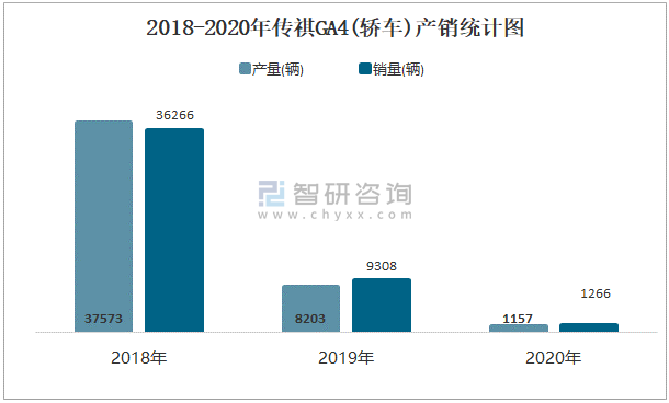 2018-2020年傳祺GA4(轎車)產銷統計圖