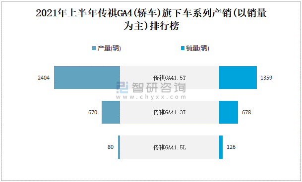2021年上半年傳祺GA4(轎車)旗下車系列產銷(以銷量為主)排行榜