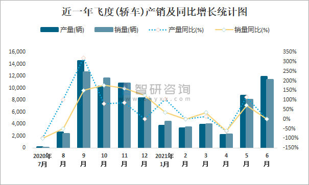 根據中國汽車工業協會數據可知:2021年6月飛度(轎車)產量為11858輛,同比下降0%,銷量為11370輛,同比下降0%,當月產銷率為95.88%;2021年上半年飛度(轎車)產量為33719輛,同比增長114.6%,銷量為33516輛,同比增長97.8%,產銷率為99.4%;2014-2020年飛度(轎車)產銷量均在2018年達到最高值,此后逐年遞減,且近7年總產量大于總銷量,積壓了庫存1146輛。