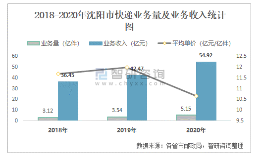 2018-2020年沈陽(yáng)市快遞業(yè)務(wù)量及業(yè)務(wù)收入統(tǒng)計(jì)圖