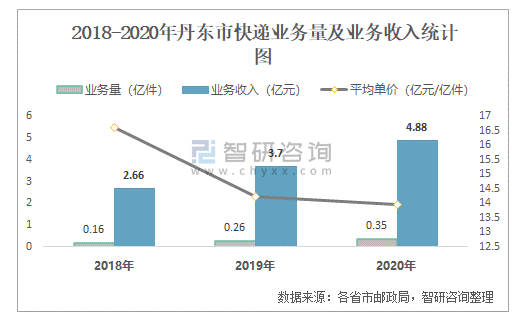 2018-2020年丹東市快遞業(yè)務(wù)量及業(yè)務(wù)收入統(tǒng)計(jì)圖