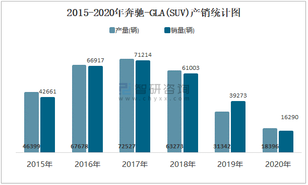 2015-2020年奔馳-GLA(SUV)產銷統計圖
