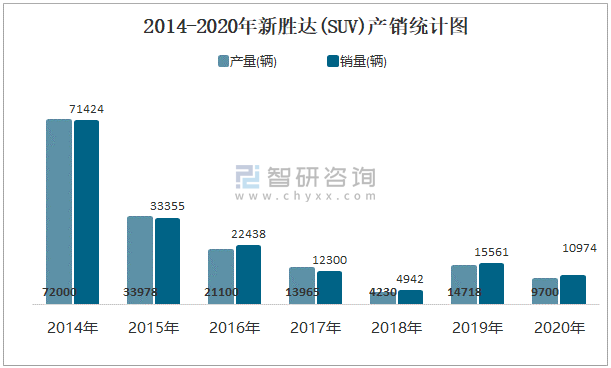2014-2020年新勝達(SUV)產(chǎn)銷統(tǒng)計圖