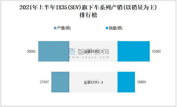 2021年上半年IX35(SUV)旗下車系列產銷(以銷量為主)排行榜