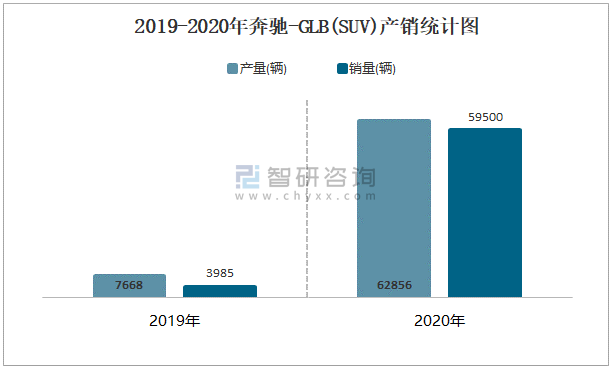 2019-2020年奔馳-GLB(SUV)產銷統計圖