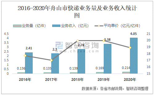 2016-2020年舟山市快遞業(yè)務(wù)量及業(yè)務(wù)收入統(tǒng)計圖