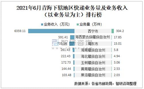 2021年6月青海下轄地區快遞業務量及業務收入(以業務量為主)排行榜