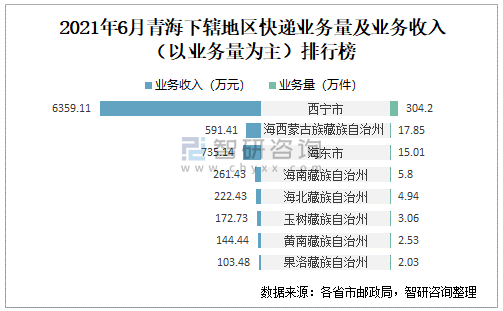 2021年6月青海下轄地區(qū)快遞業(yè)務量及業(yè)務收入(以業(yè)務量為主)排行榜