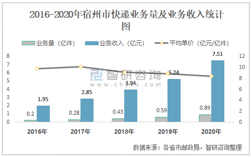 2016-2020年宿州市快遞業(yè)務(wù)量及業(yè)務(wù)收入統(tǒng)計(jì)圖