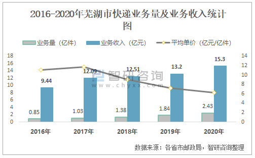 2016-2020年蕪湖市快遞業(yè)務(wù)量及業(yè)務(wù)收入統(tǒng)計(jì)圖