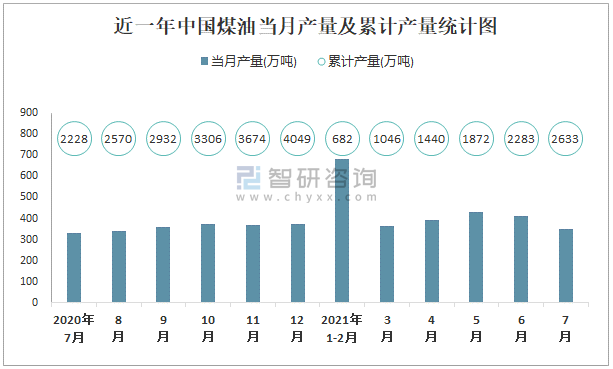 根據(jù)國家統(tǒng)計局?jǐn)?shù)據(jù)顯示:2021年7月中國煤油產(chǎn)量為349萬噸,同比增長5.2%;2021年1-7月中國煤油累計產(chǎn)量為2632.6萬噸,累計增長18.2%;2015-2020年中國煤油產(chǎn)量2019年達(dá)到最高,次年出現(xiàn)小幅度下滑。