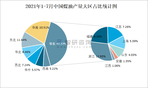 2021年1-7月中國煤油產(chǎn)量大區(qū)占比統(tǒng)計圖
